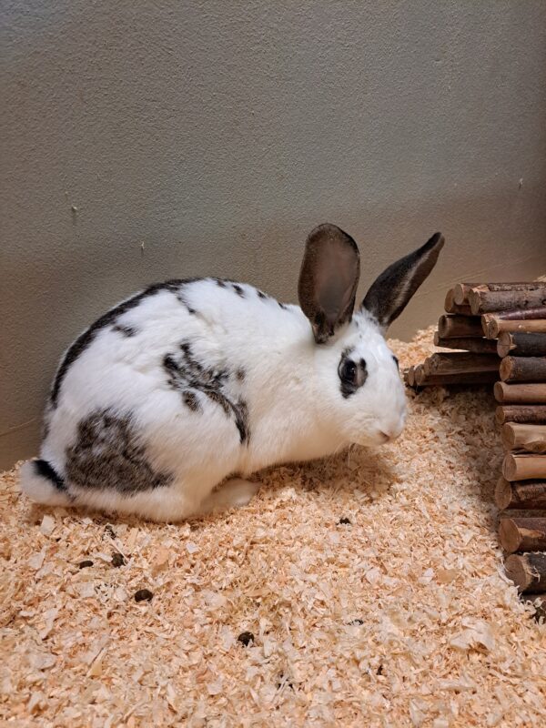In der langen Zeit, die der kleine Kerl schon bei uns ist (mit Unterbrechungen seit 2020), hat er viel dazu gelernt, Vergesellschaftungen sind mittlerweile kein Problem mehr, er zeigt sich anfangs eher von seiner schüchternen Seite - bis er sich traut, bei seinen Kaninchenkollegen um Kuscheleinheiten zu bitten. Dabei versteht er sich mit Böckchen sogar oft besser als mit Artgenossinnen. Wenn ihm allerdings etwas nicht passt, lässt er diesen Unmut kurz an umliegenden Gegenständen oder Artgenossen aus, fängt sich aber sehr schnell wieder. Sein zukünftiger Kaninchenpartner sollte deshalb souverän und ausgeglichen, eher dominant, sein und sich von Chalettos "5-Minuten" nicht einschüchtern lassen, denn grundlegend sucht er den engen Kontakt zu anderen Kaninchen und orientiert sich stark an diesen.