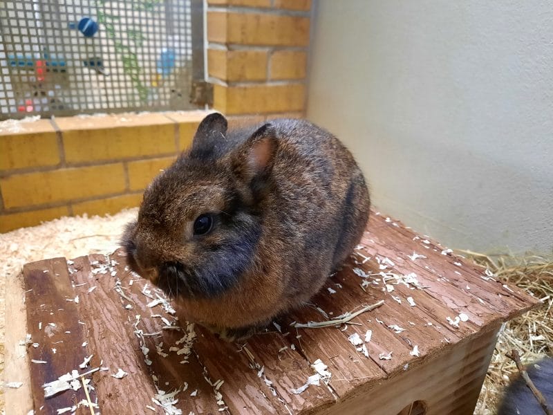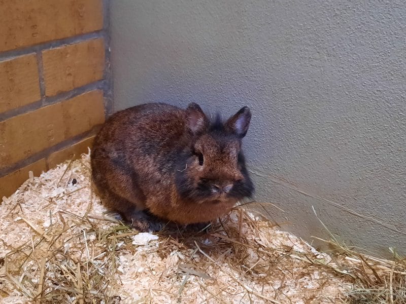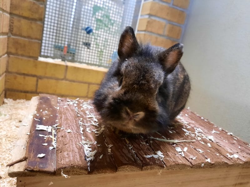 Beim Anblick von Chaletto ist meist jeder verzückt, doch der kleine Zwerg hat es faustdick hinter seinen kurzen Ohren. Nicht nur dass er in die Hände beißt wenn jemand sich ins Gehege beugt und diese ihm hinhält, auch beim Reinigen seiner Unterkunft greift er manchmal Arbeitsgeräte und Pfleger an. Er sollte somit nicht in einen Haushalt mit Kindern vermittelt werden.