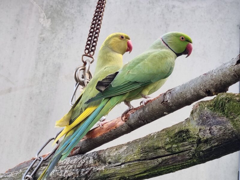 Derzeit warten 2 grüne Halsbandsittiche, auch kleiner Alexandersittich genannt, auf ein neues Zuhause bei Artgenossen.